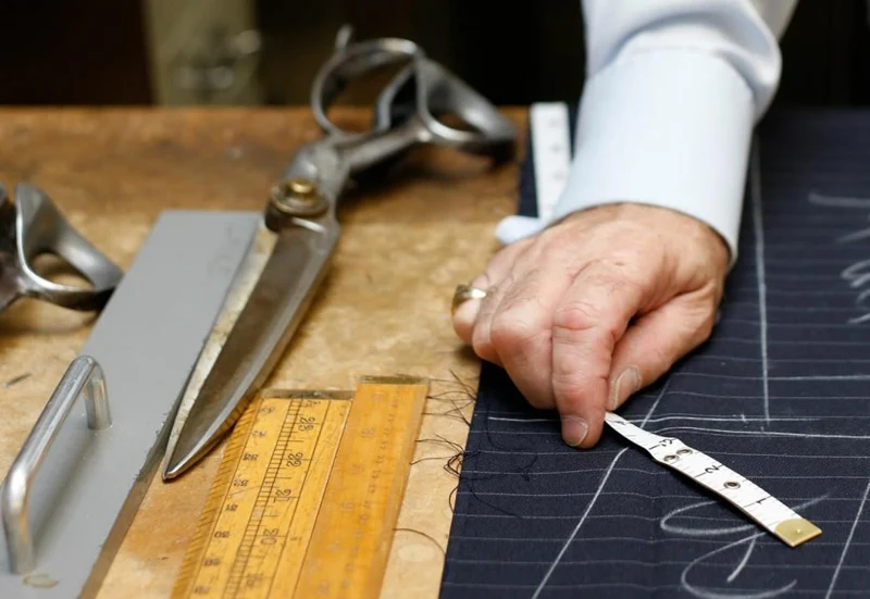 패턴 제작자는 도면에 따라 의류 샘플을 만듭니다.
